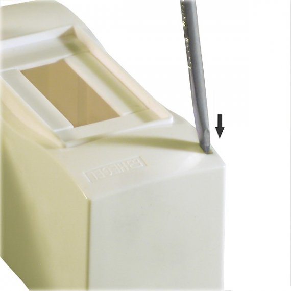 В конструкции боксов емкостью 1-2 и 2-4 модуля предусмотрена возможность пломбирования крышки в закрытом состоянии. Сами крышки боксов КМ2020 и КМ2040 крепятся на основании при помощи защелок без саморезов и открываются только при помощи инструмента.