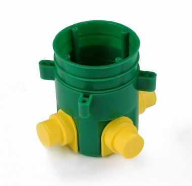 Переходное кольцо предназначено для установки в установочные коробки для монолитного строительства КУ1301. Кольцо плотно становиться внутрь коробки КУ1301, что позволяет затем установить в него электроустановочные изделия на лапки или на шасси с установочным размером 60 мм. На кольцо можно установить универсальную крышку К5001. Кольцо можно задействовать разной высоты: 22 мм, 34 мм и 46 мм. Самая низкая высота применяется, если после установки кольца стена не штукатурится. Кольцо полностью утоплено в коробку. Если стена штукатурится, то высота кольца выбирается 34 или 46 мм, в зависимости от толщины штукатурки, при этом над коробкой кольцо выступает на 12 или 24 мм. При этом нужная высота кольца получается отрезанием по утончению рядом с одним из колец отбортовки.