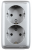 РА16-154-06 Розетка открытой установки, двухместная, с заземляющим контактом, со шторками, с изолирующей пластиной, цвет серебро