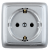 РА16-174-06 Розетка открытой установки, одноместная, с заземляющим контактом, со шторкой, с изолирующей пластиной, цвет серебро