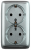 РА16-183-06 Розетка открытой установки, двухместная, с заземляющим контактом, с изолирующей пластиной, цвет серебро