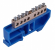 Шина "ноль" (рабочая нулевая шина) предназначена для присоединения к ней нулевых рабочих проводников. Материал: латунь с никелированным покрытием. Для шин класса "эконом" латунь без покрытия. Шины поставляются с пластиковыми изоляторами "DIN" (для установки на 35 мм DIN-рейки) или "стойка" (для установки на поверхность). Максимальное сечение проводника, присоединяемое в контактное отверстие, равно 16 кв. мм.